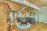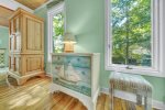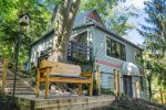NEW PROPERTY 2022! Tucked into the trees with picturesque views of the Kalamazoo River this charming home is one of a kind. Located on quiet & serene Park Street you’ll be within walking distance to Mt Baldhead Park & just a five minute drive up to Oval Beach; downtown Douglas & Saugatuck are both just a five minute drive away as well. This home offers 3 stories of living space for your whole group to spread out & enjoy all of the amazing views. The main level of the home features a kitchen open to a large living room. Just off the living area is a classic dining room with windows all around. The lower level of the home features two bedrooms (queen in master & twin over full bunk with additional trundle) plus a full bathroom. Located on top level of the home is the second bedroom featuring a large layout with two queen beds & room for a pack n play. The best features of this home are the many outdoor spaces to enjoy nature all around. The screened in porch is the perfect place for morning coffee or curling up with a book. French doors off both the main level & lower level living rooms each offer additional outdoor space for relaxing & enjoying views of the river.