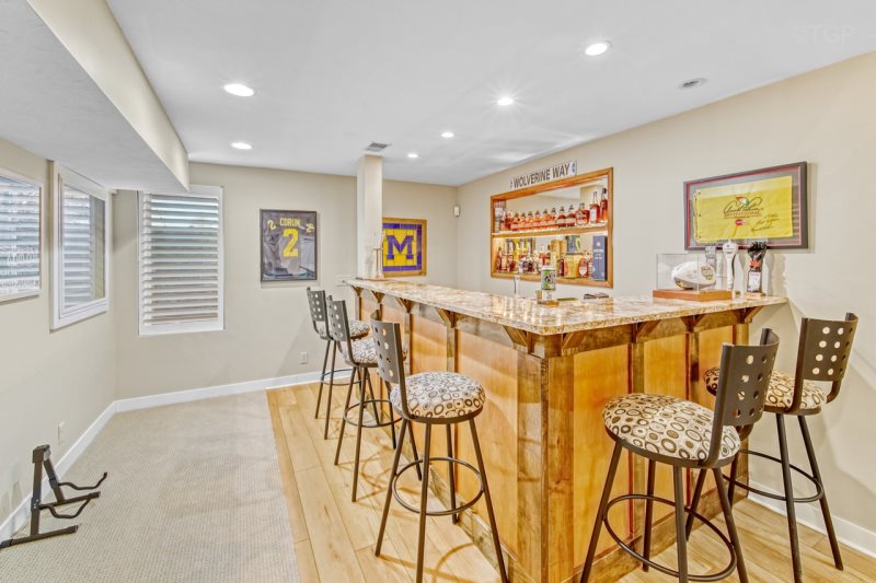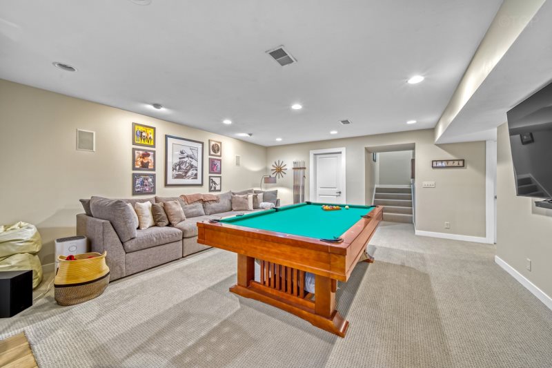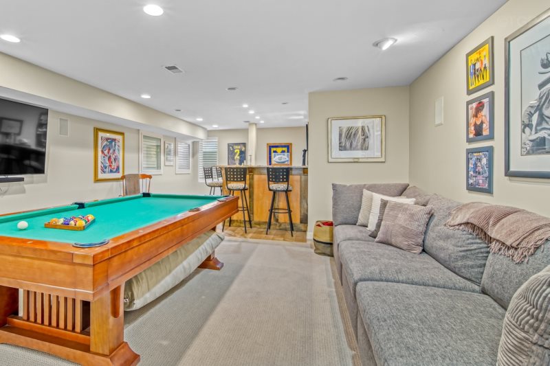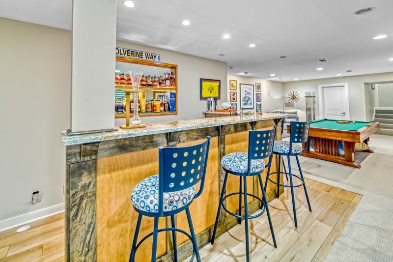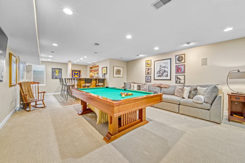 For entertainment, the spacious game room is a true standout, featuring a full-size pool table, luxurious bar area and plenty of room for friendly competition, laughter, and evenings spent together after a day at the lake.