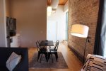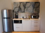 Located on our second floor, this contemporary suite is the newest and largest addition to Bella Vita Suites. This luxurious suite offers over 500 sq feet of comfort for your getaway. This room features a large living & dining space along with an efficiency kitchen which offers a full size fridge, microwave, toaster oven & essential kitchen supplies. The separate bedroom offers a king bed with sky light and pull shade as well as a tv. The bathroom features granite counters, a relaxing soaking tub and glass & tile shower. This room also offers daily housekeeping as well as complimentary sample Aveda toiletries, in-room coffee, tea, bottled water, breakfast muffins & biscotti and private parking. The suites at Bella Vita are all non-smoking and do not permit children under the age of 16 or pets. Thank you for your cooperation.